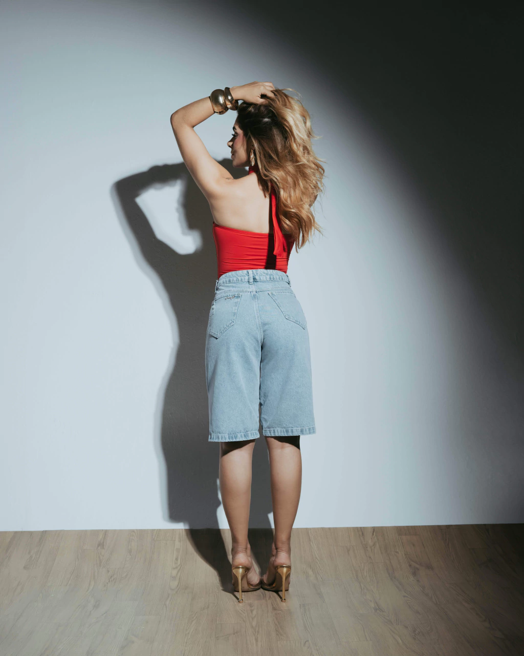 Lembra bastante o shape das bermudas largas dos anos 90 e 2000. Com comprimento no joelho, modelagem solta e confortável - pegada oversized. Produzida em jeans 100% algodão, super encorpado.