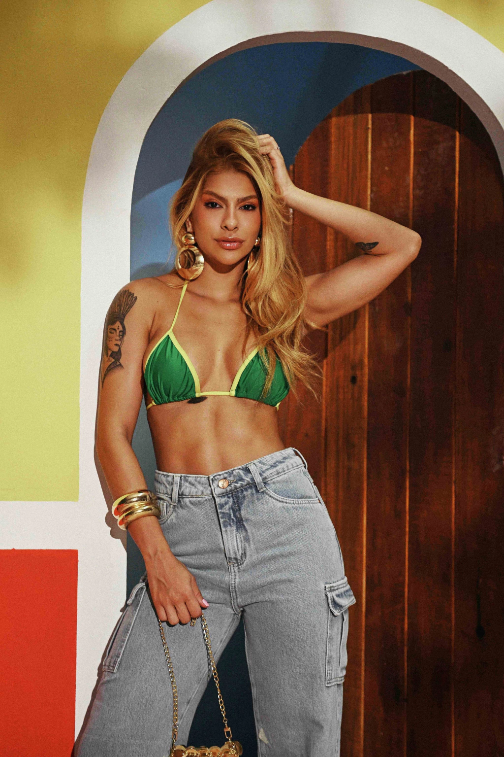 O grande diferencial está nos bolsos laterais amplos com abas, que reforçam o estilo utilitário e dão mais funcionalidade à peça. Conta ainda com bolsos frontais tradicionais, passantes para cinto e fechamento por zíper e botão, garantindo praticidade no dia a dia.